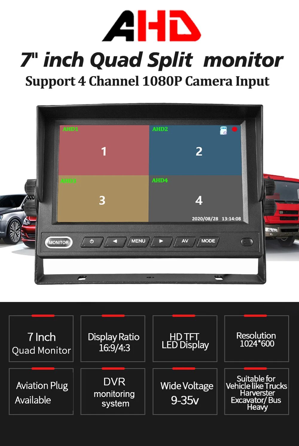 7 Inch AHD Quad Screen Monitor