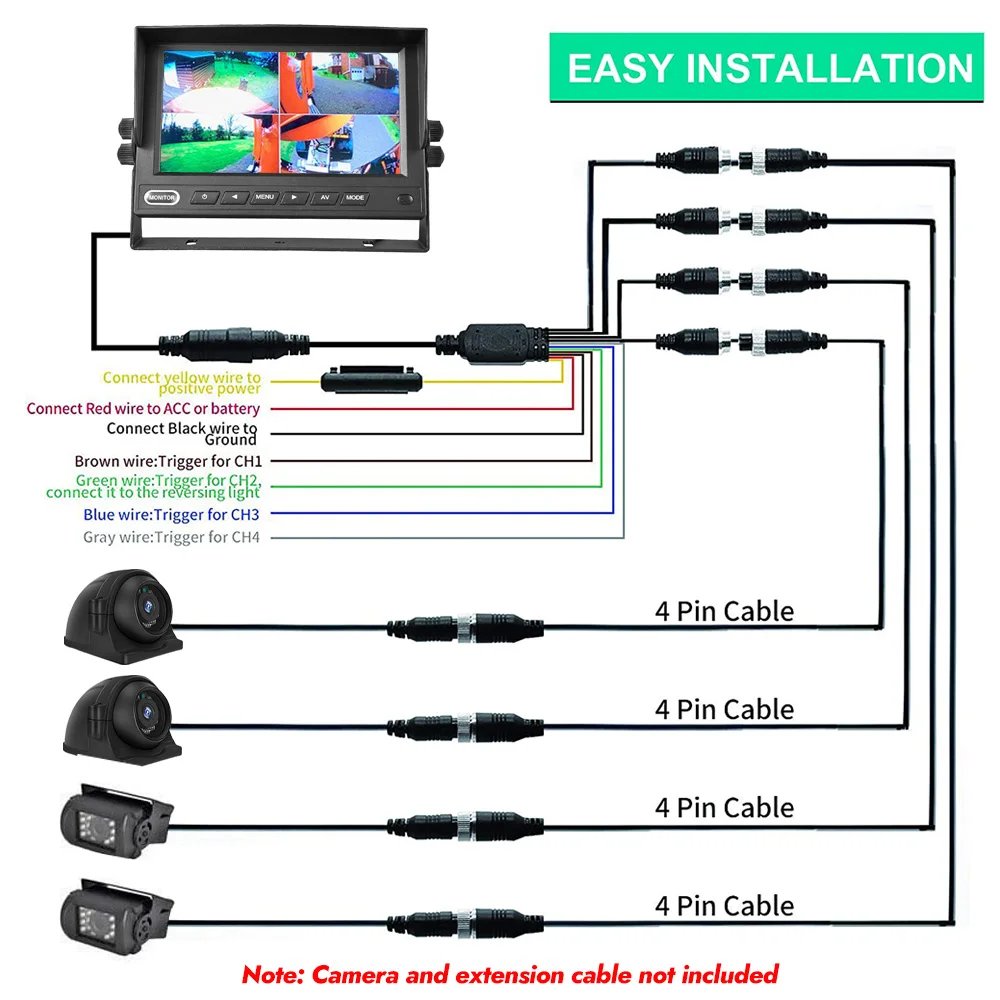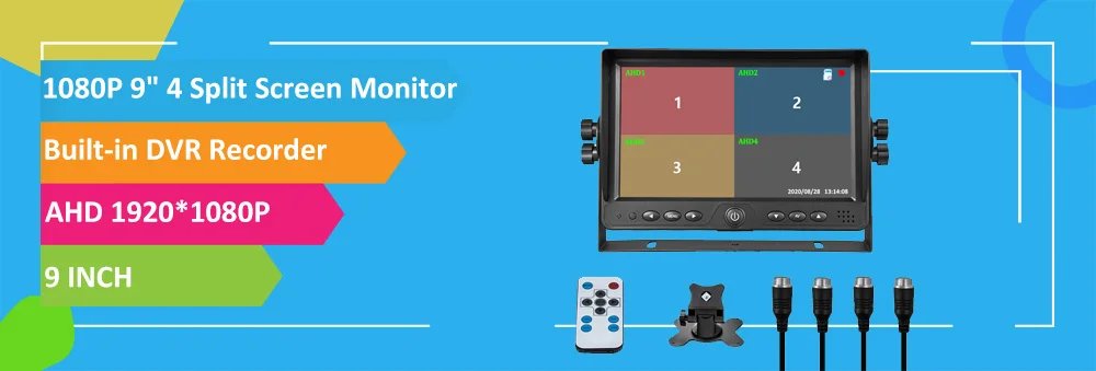 【Monitor Built-in DVR Video Recording 】 High-definition Video Record Function. The record files been stored in SD card, maximum 128G, support date & time setting of the video. AV1/AV2/AV3/AV4 with trigger wire, once trigger wire activated, image automatically switchover to corresponding camera.