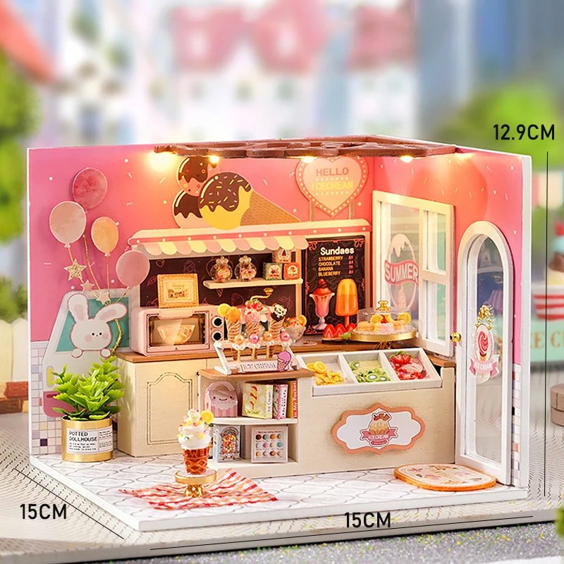 Cake shop Doll House Mini DIY Small Kit Building Assembly Model DIY Handmade 3D Puzzle Kit With LED Toy For Kids Gifts DollHouse