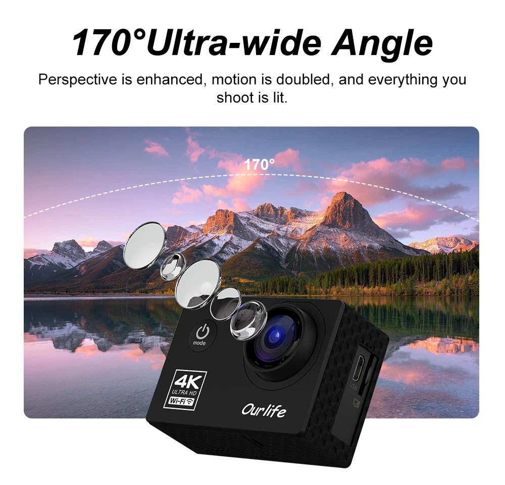 Ourlife Q105 Action Camera Ultra HD 4K30FPS 16.0MP Wi-Fi 2.0