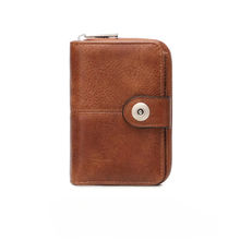 RFID Vintage Short Women’s Wallet Multi-card Slot Two-fold Zipper Card Holder Coin Purse Solid Color Premium Texture Zip Clasp