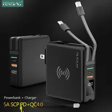 FERISING-10000mAh Wireless Power Bank, PD 5A Fast Charger, Type-C, USB C, QC3.0, Powerbank for iPhone, Xiaomi External Battery
