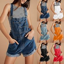 Fashion Denim Overalls Women Rolled Up Shorts Jumpsuits Korean Y2k Retro Jeans Summer Sleeveless Backless Suspenders Rompers