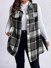 Women Plus Size 1XL-5XL Plaid Print Flap Detail Sleeveless Coat Ladies Fashion Sleeveless Thick Thermal Vest Women Outwear