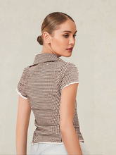 Women s Short Sleeve Plaid Shirt with Lace Trim and Turn Down Collar Button Down Blouse for Summer Casual Wear Streetwear Top